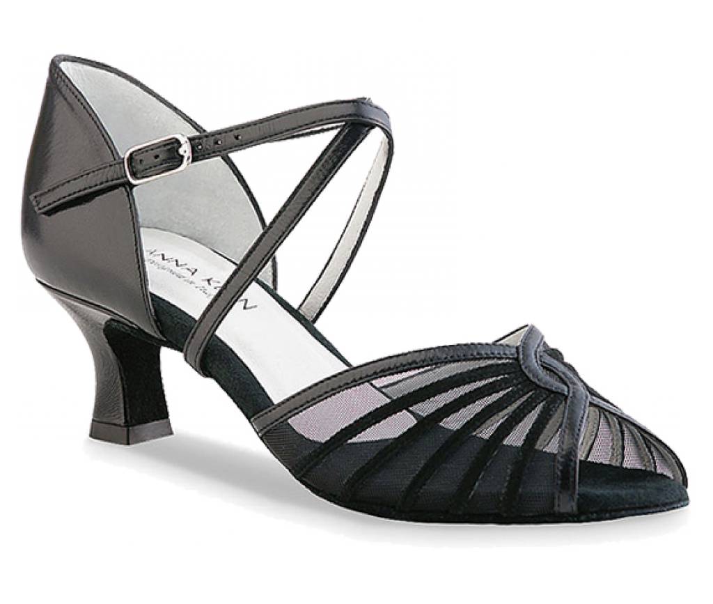 Deze Anna Kern dansschoen sluit door middel van een drukknoopje. De voorkant van de schoen is een combinatie van leer en gaas waardoor de voorvoet mooi omsloten wordt. Deze schoen is onder andere geschikt voor Latin en Salsa.