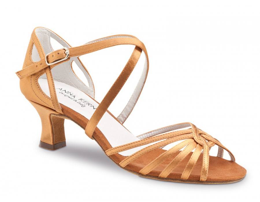 Dansschoen van Anna Kern. Deze schoen is een opvallende Latin/Ballroom schoen van satijn met een prachtige kleur en een hakje van 5 cm.