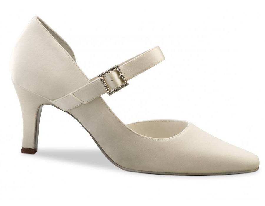 Bruidsschoen Zoé is een klassiek model bruidsschoen met een opvallende breed bandje over de wreef.