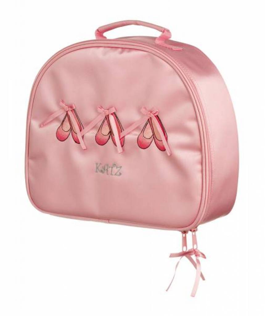 Satijnen danstas van Katz voor de kleine ballerina en danseres! Kinderen zijn weg van deze praktische en lieflijke danstas met balletschoentjes op de voorkant. De tas heeft genoeg ruimte om een complete balletoutfit inclusief schoentjes in te bewaren. Ook zit er aan de binnenkant een leuk spiegeltje.De ritsjes zijn prachtig afgewerkt met mooie metalen mini balletschoentjes.