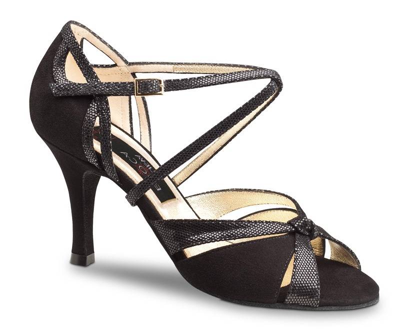 Dansschoen Sienna van Nueva Epoca is zeer aantrekkelijk in stijlvol zwart voor Salsa of Tango. Met een fijne hakhoogte van 7 cm.