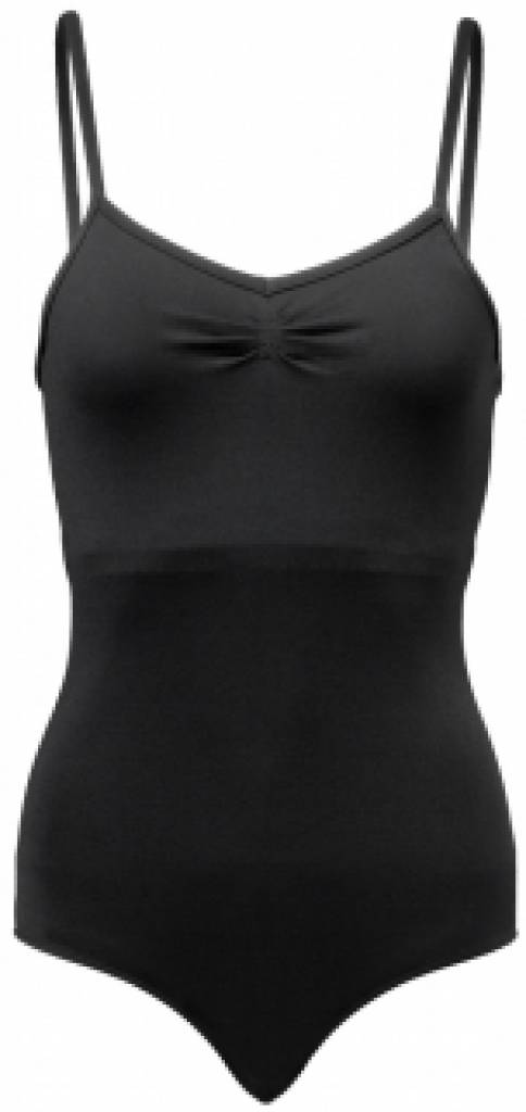Balletpakje met spaghettibandjes. Gerimpeld voor en achter. Met ingebouwde top aan de voorzijde voor extra versteviging.