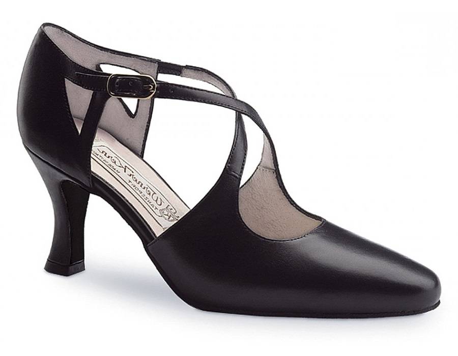Dansschoen Ines is een dichte schoen, met een elegant uiterlijk. De schoen is gemaakt van soepel nappa-leer waarnaast de leren voering vochtabsorberend is. Ines heeft een hak van 6,5 cm met een breed oppervlakte voor stabiliteit. De zool is van suède en goed voor een controleerbare en makkelijke beweging. Het enkelbandje met nikkelvrije gesp is verstelbaar voor een goede pasvorm.